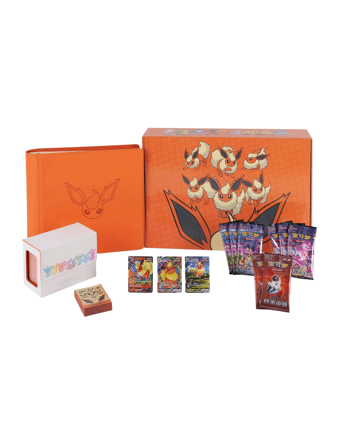 Designed for both collectors and competitive players, this premium set combines breathtaking artwork, rare boosters, and high-quality accessories that capture the true spirit of Flareon.
