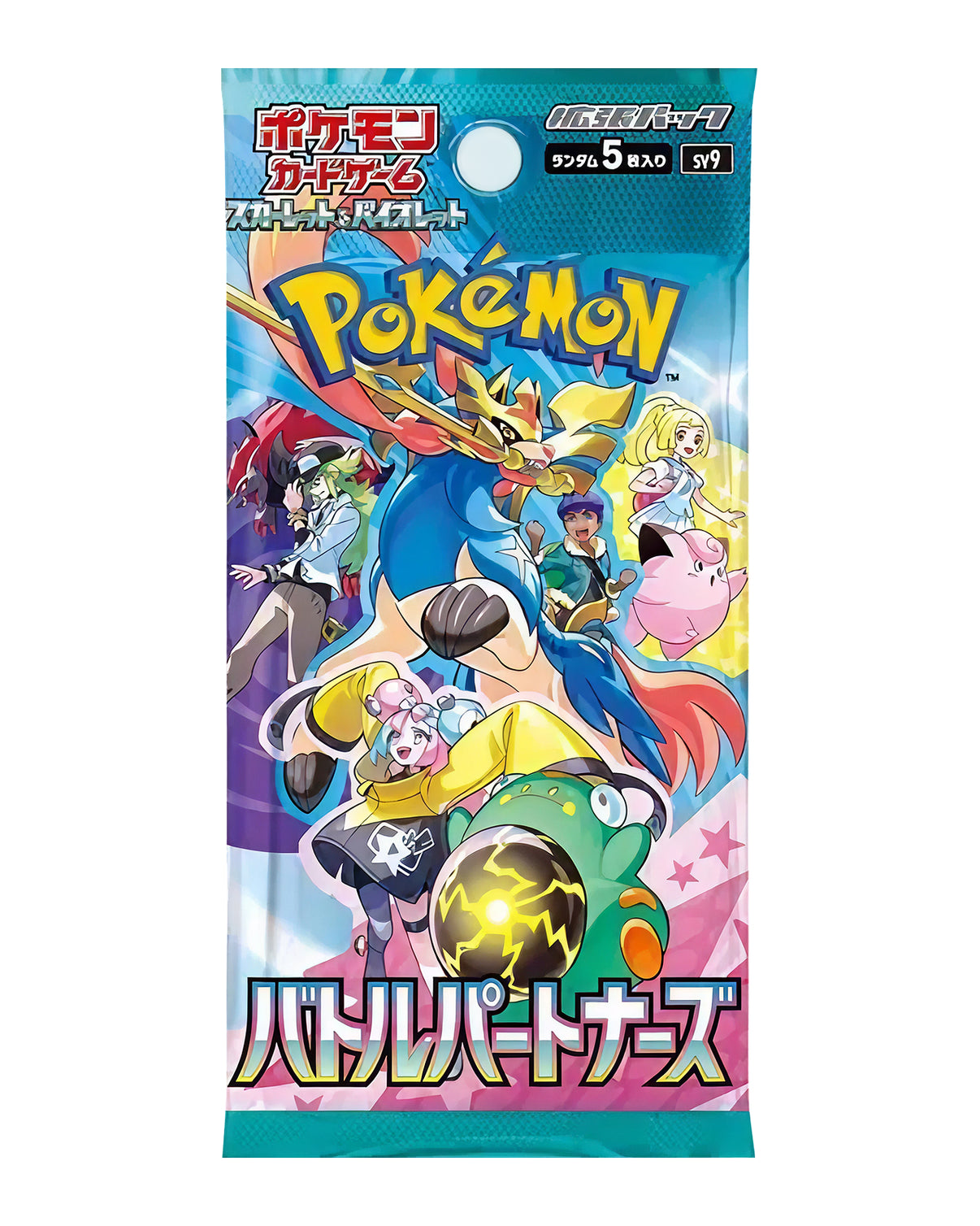 One Scarlet & Violet - Battle Partners - Booster Pack, each pack contains 5 TCG cards.